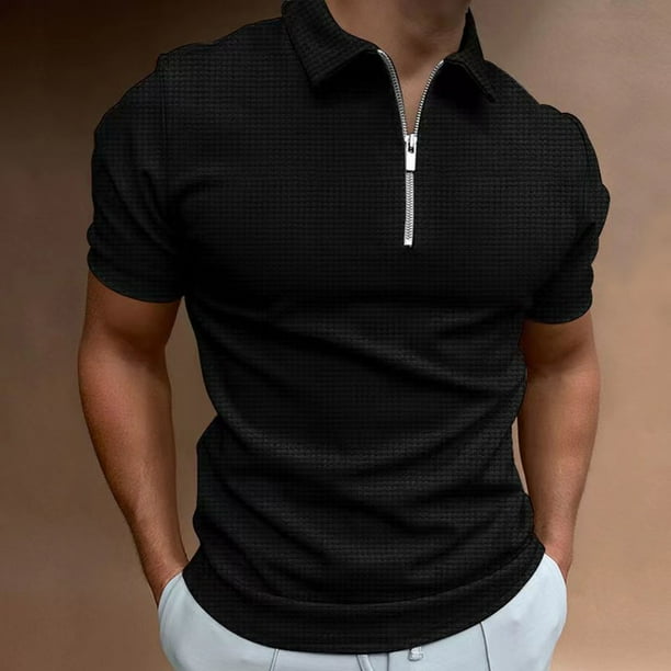 Aayomet Mens Polo Shirts Short Sleeve Men S Muscle T Shirts Stretch Long Short Sleeve Workout Tee Casual Slim Fit Polo Shirt Black M Walmart Com